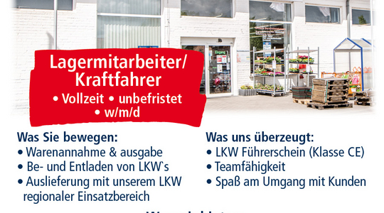 Kraftfahrer/Lagermitarbeiter in Klosterfelde gesucht